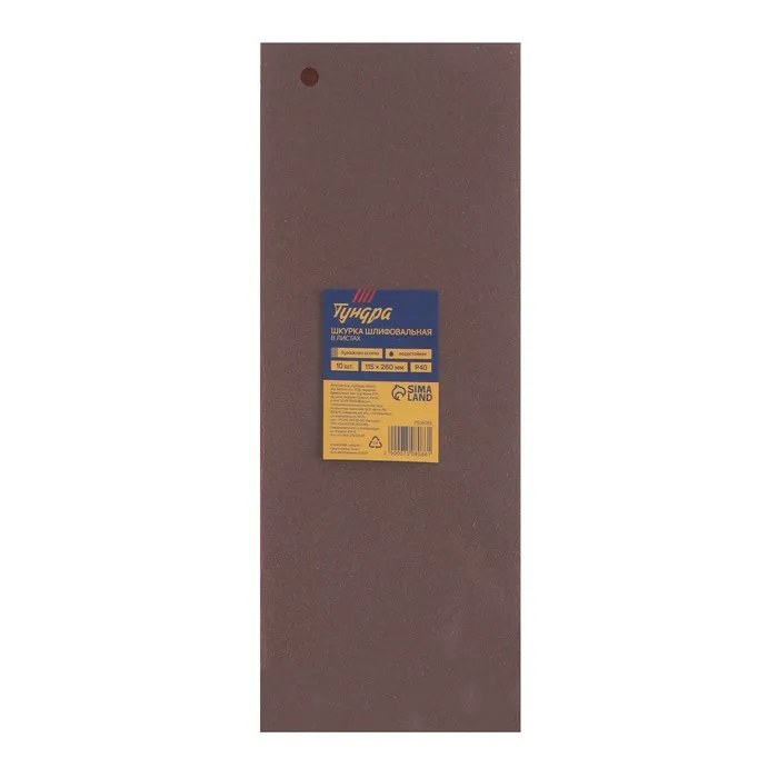 Шкурка шлифовальная в листах ТУНДРА, на бумажной основе водост., 115×280, Р40, 10 шт. — Характеристики