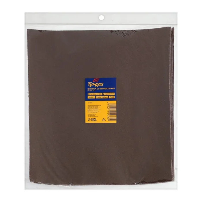 Шкурка шлифовальная в листах ТУНДРА, на тканевой основе водостойкая, 230×280, Р100, 10 шт. — Характеристики