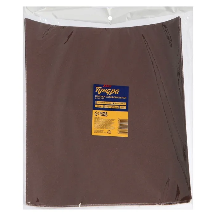 Шкурка шлифовальная в листах ТУНДРА, на тканевой основе водостойкая, 230×280, Р120, 10 шт. — Характеристики