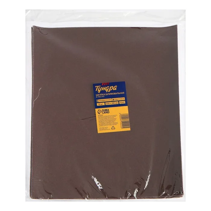 Шкурка шлифовальная в листах ТУНДРА, на тканевой основе водостойкая, 230×280, Р240, 10 шт. — Характеристики