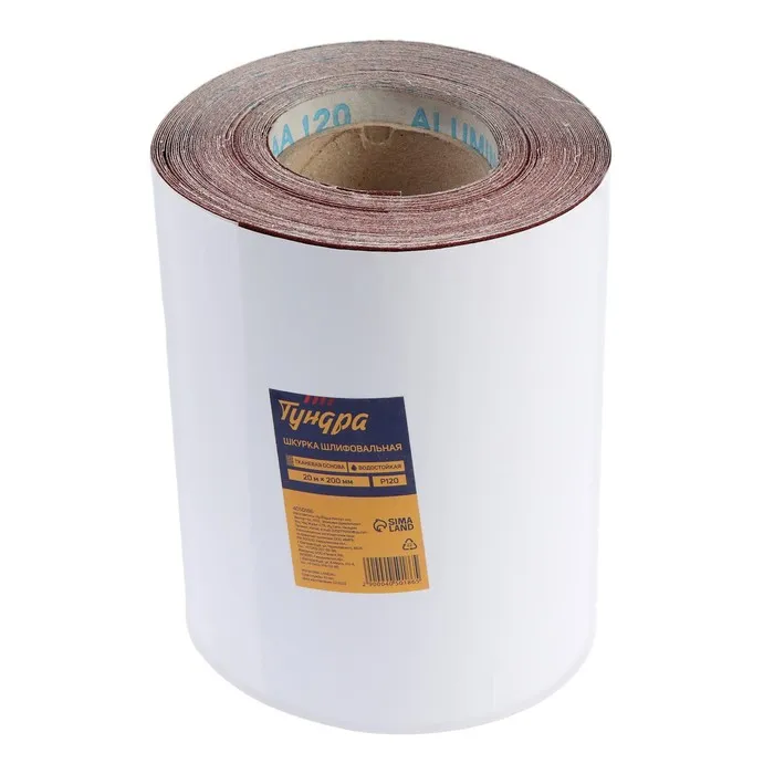 Шкурка шлифовальная в минирулонах ТУНДРА, на тканевой основе водостойкая, 200 мм × 20 м, Р120 — Характеристики