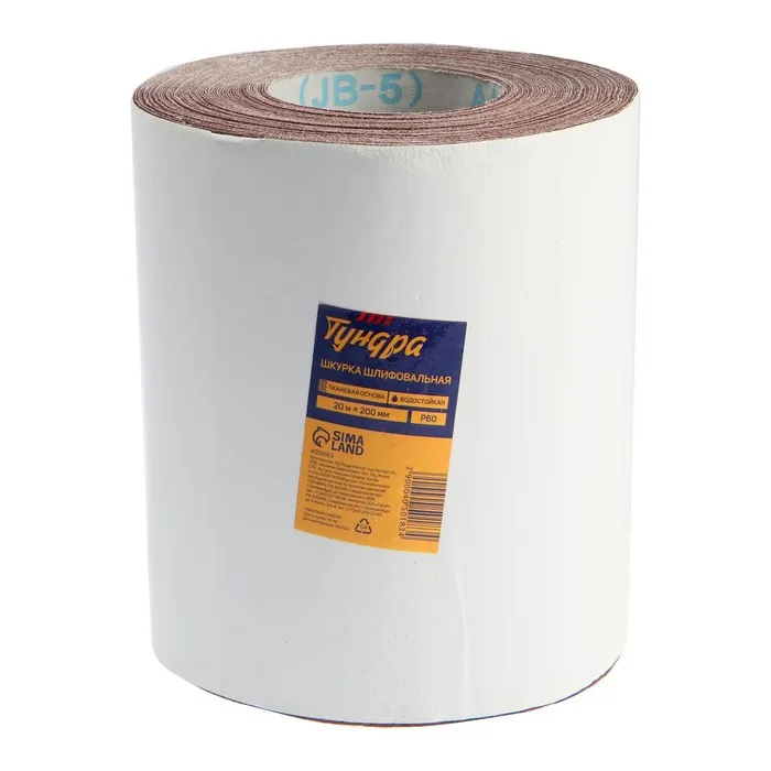 Шкурка шлифовальная в минирулонах ТУНДРА, на тканевой основе водостойкая, 200 мм × 20 м, Р60 — Характеристики