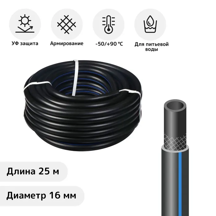 Шланг поливочный морозостойкий, ТЭП, 16 мм, 25 м, армированный, «Стандарт Проф» — Характеристики