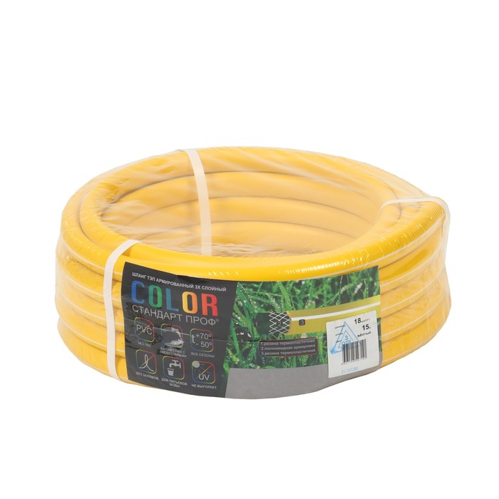 Шланг поливочный морозостойкий, ТЭП, 18 мм (3/4"), 15 м, армированный, COLOR, жёлтый — Характеристики
