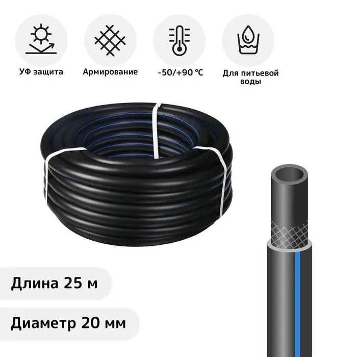 Шланг поливочный морозостойкий, ТЭП, 20 мм, 25 м, армированный, «Стандарт Проф» — Характеристики