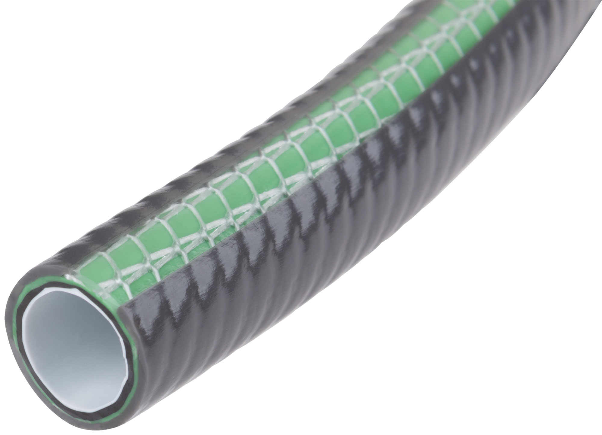 Шланг изготовлен из пятислойного армированного текстильным плетением ПВХ с полиэстерной нитью. Это обеспечивает его долговечность и устойчивость к неизбежным механическим нагрузкам. Максимальное рабочее давление составляет 7 бар, что делает его идеальным для различных поливочных задач.
