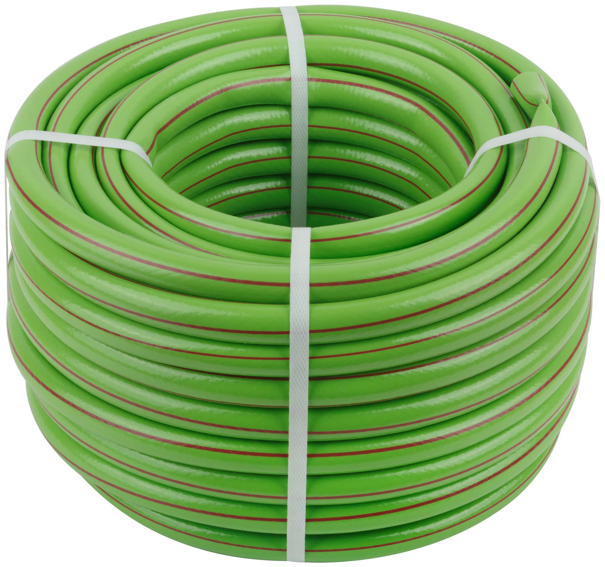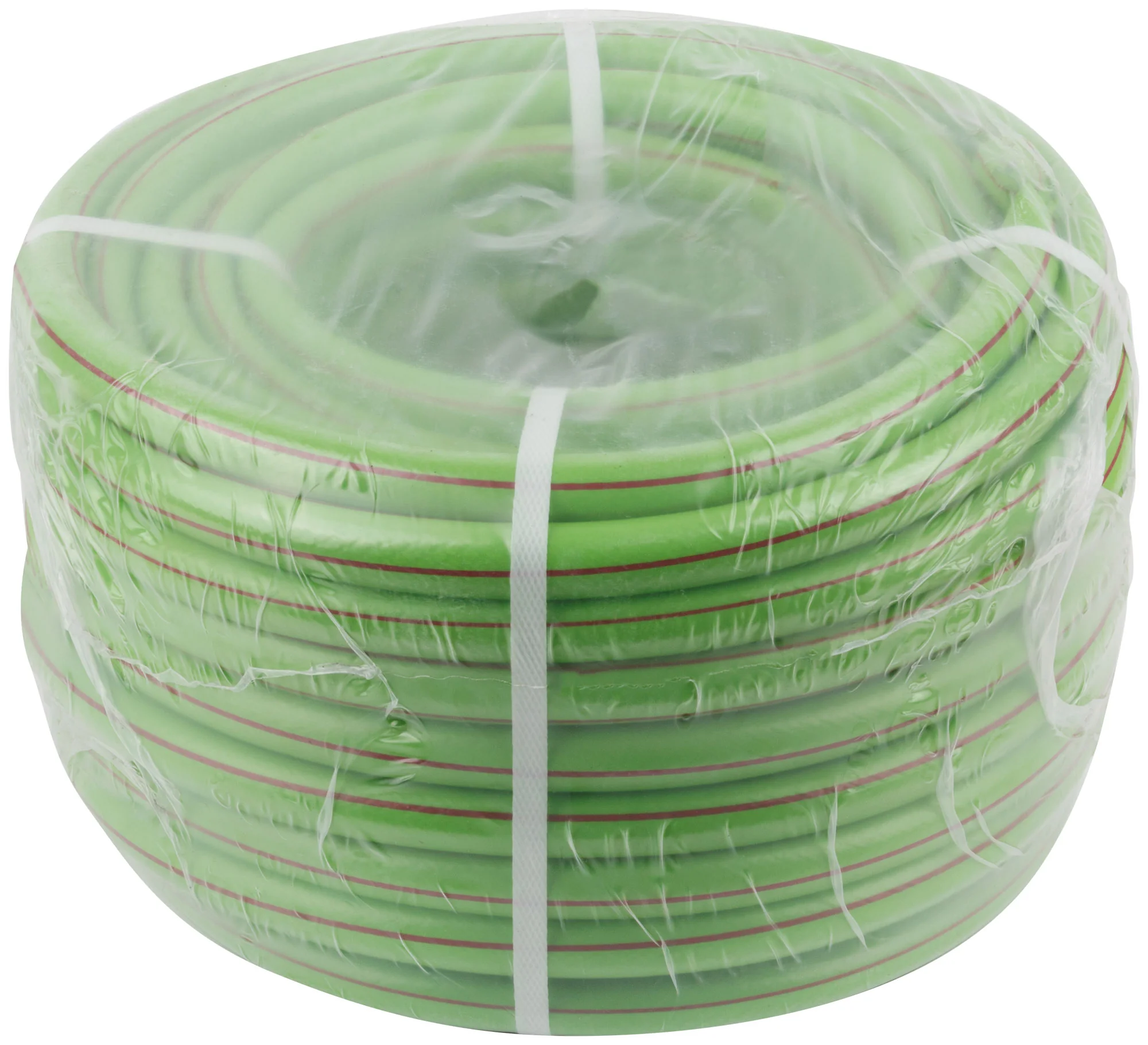 Шланг изготовлен из высококачественного ПВХ и армирован полиэфирной нитью, что предотвращает его скручивание и делает его более долговечным. Трехслойная конструкция обеспечивает надежность и долговечность даже при интенсивной эксплуатации.