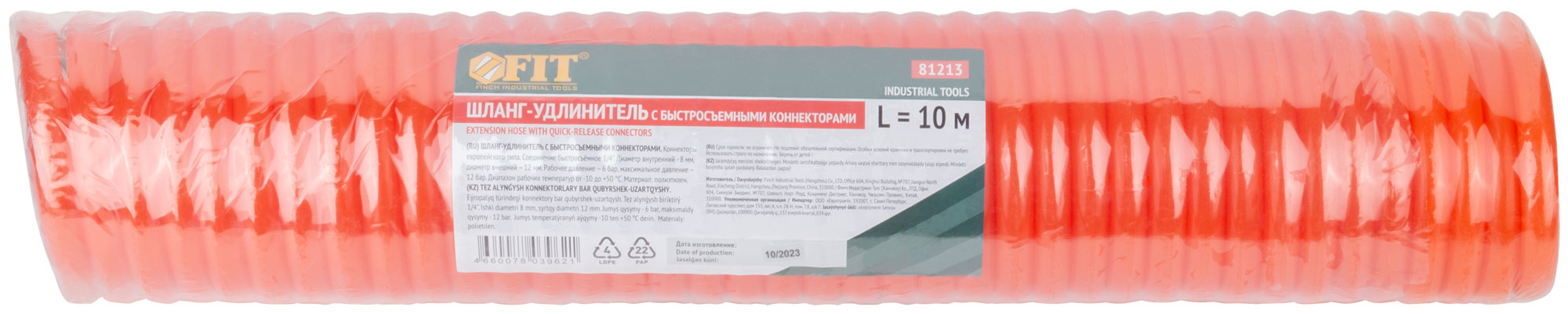 Идеальное решение для мастерских и производственных помещений, где требуется удлинение пневматической линии до 10 метров. Шланг-удлинитель FIT с диаметром 8x12 мм оснащен быстросъемными коннекторами 1/4'', что позволяет быстро подключать и отключать пневматические инструменты без использования дополнительных инструментов.