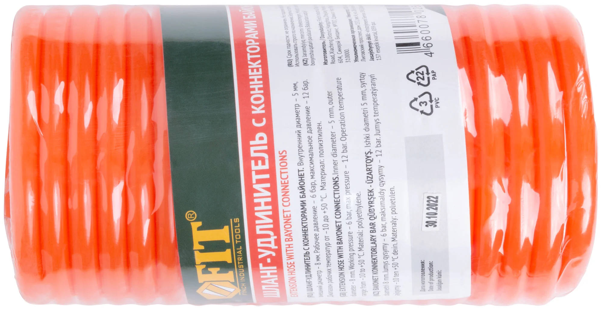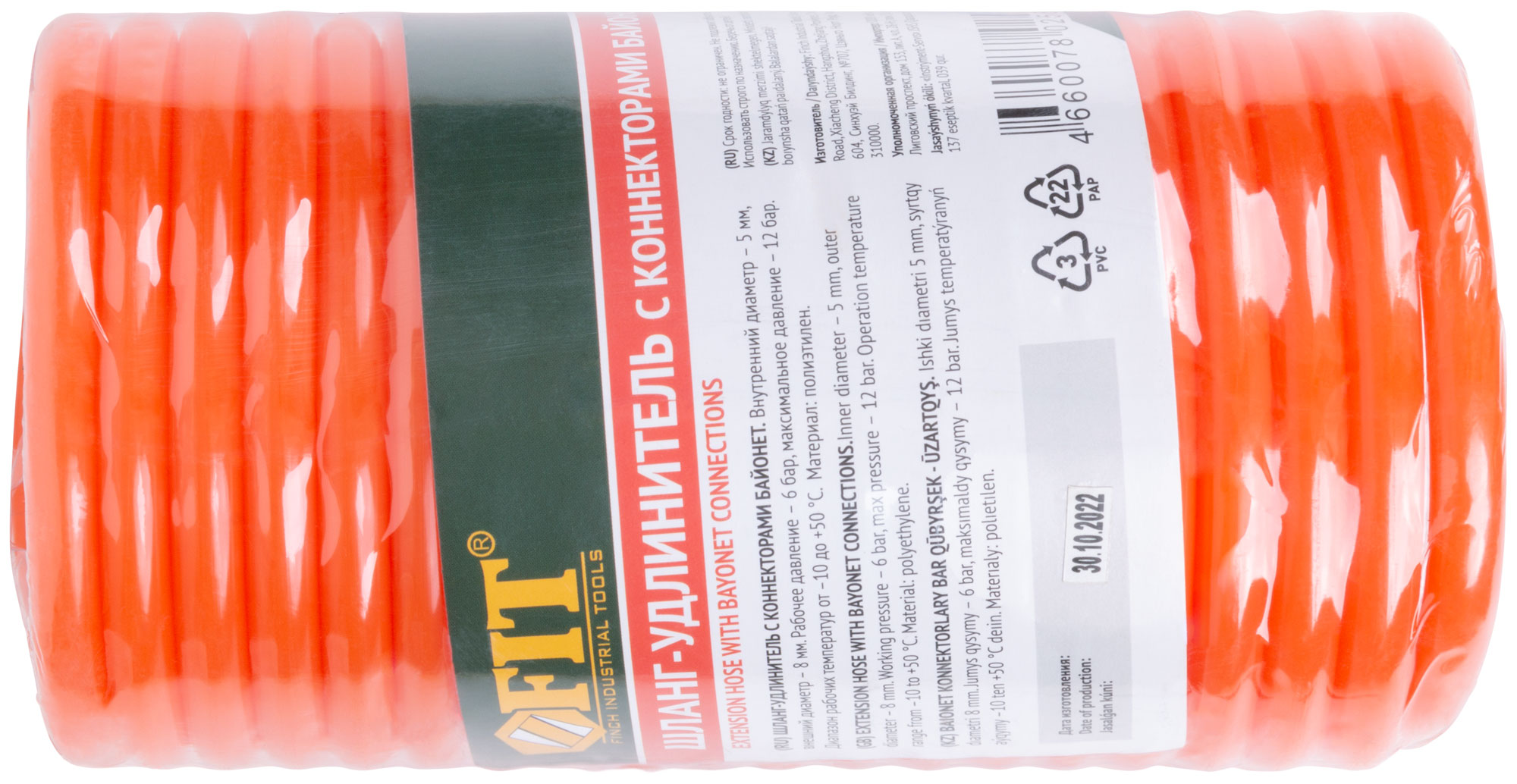 Шланг-удлинитель FIT с коннекторами байонет идеален для подключения пневматического инструмента в мастерских и на строительных площадках. Позволяет эффективно работать на удалении до 5 метров от источника воздуха.