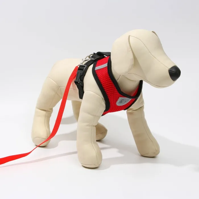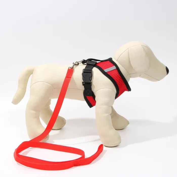 Шлейка предназначена для безопасного и комфортного выгуливания питомца, она заменяет ошейник и обеспечивает животному максимальный комфорт. Аксессуар очень лёгкий, выполнен из мягкого дышащего материала, надёжный, крепко фиксируется застёжками. В комплект входит поводок длиной 110 см.