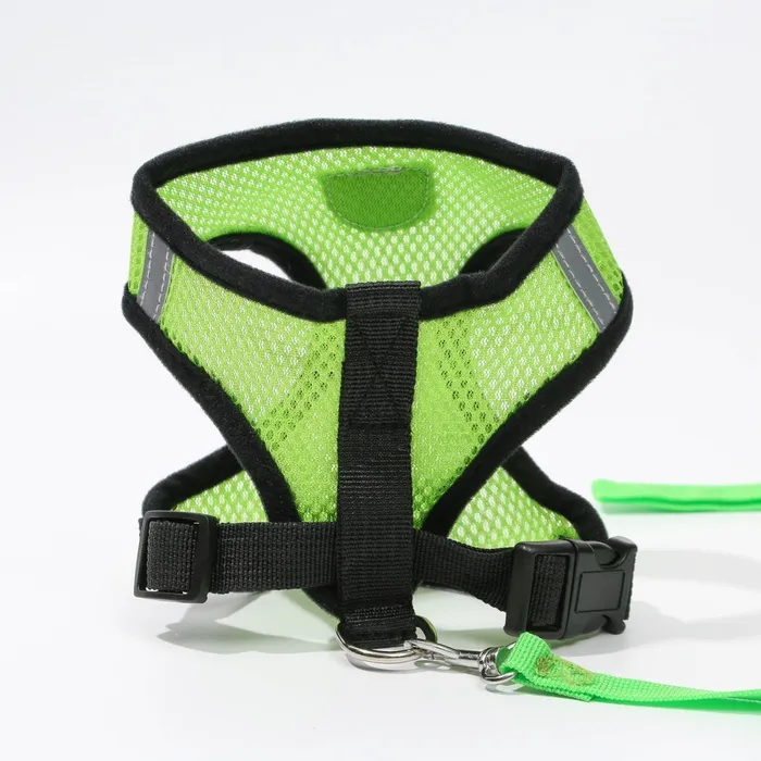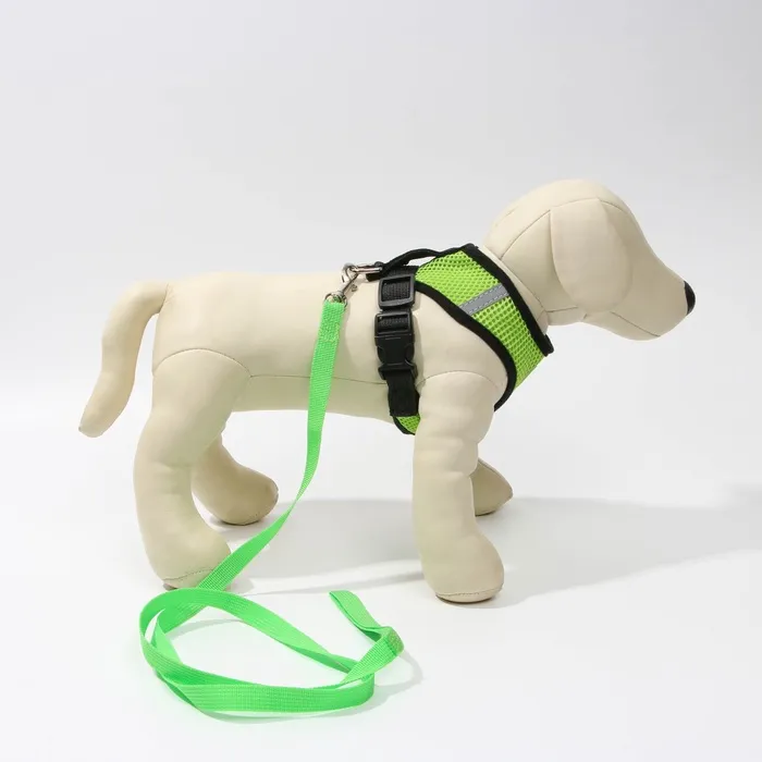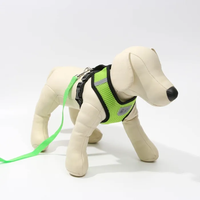 Шлейка предназначена для безопасного и комфортного выгуливания питомца, она заменяет ошейник и обеспечивает животному максимальный комфорт. Аксессуар очень лёгкий, выполнен из мягкого дышащего материала, надёжный, крепко фиксируется застёжками. В комплект входит поводок длиной 110 см.