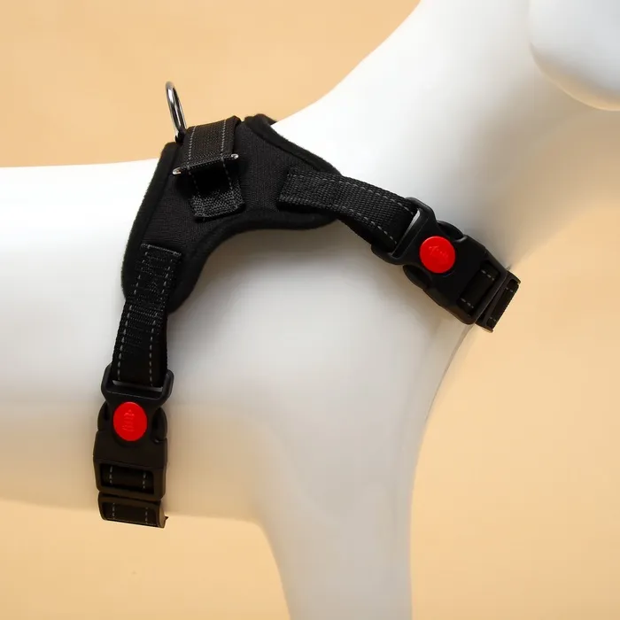 Шлейка К7 мягкая светоотражающая, размер М, ОГ 52-66 см, вес 9,5-17,5 кг, чёрная