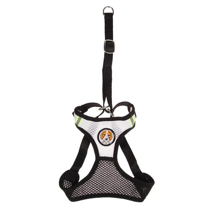 Шлейка имеет светоотражающие элементы для безопасных ночных прогулок.