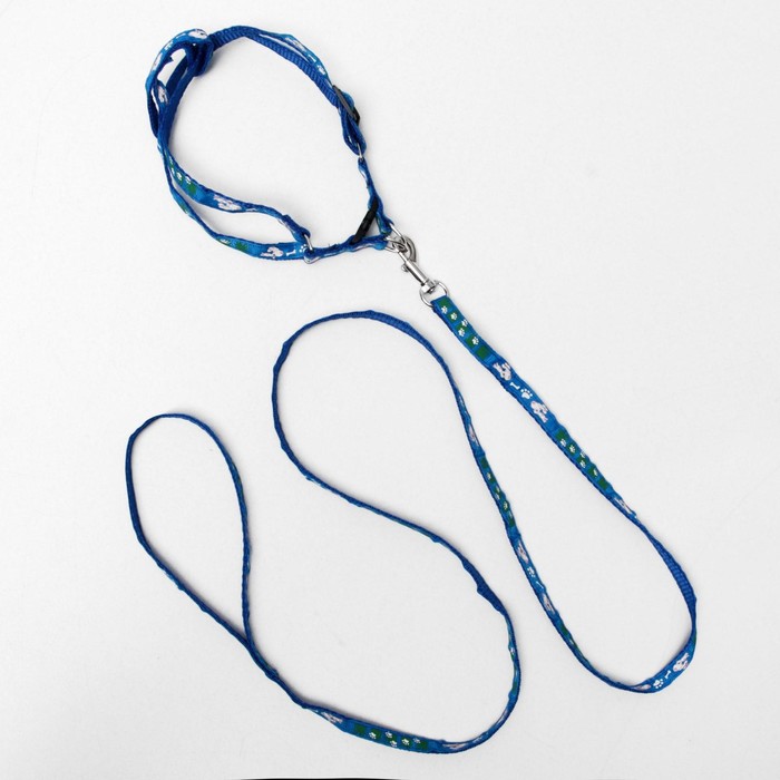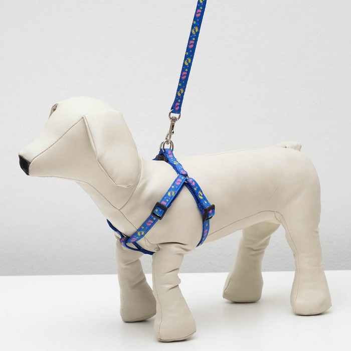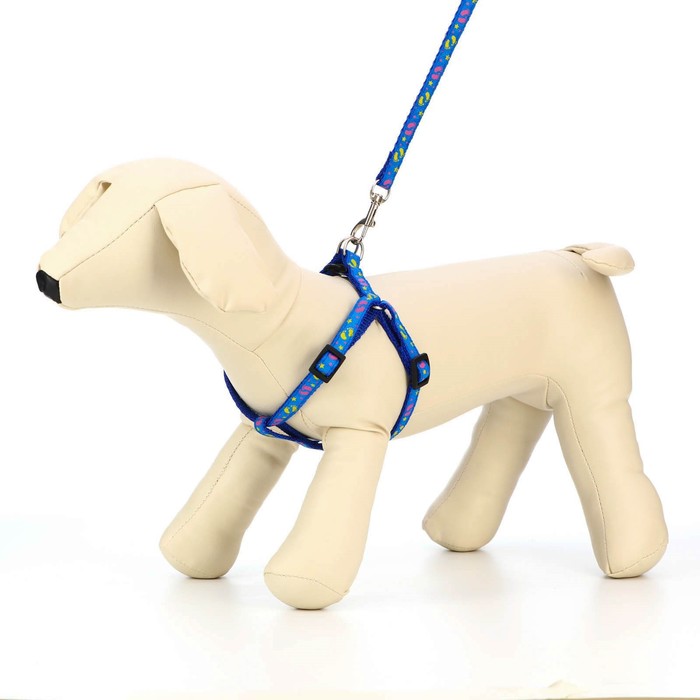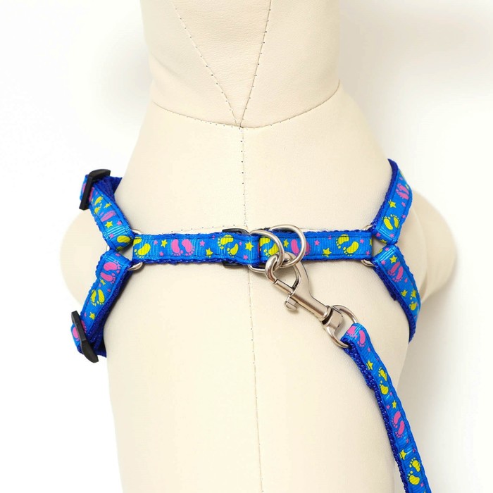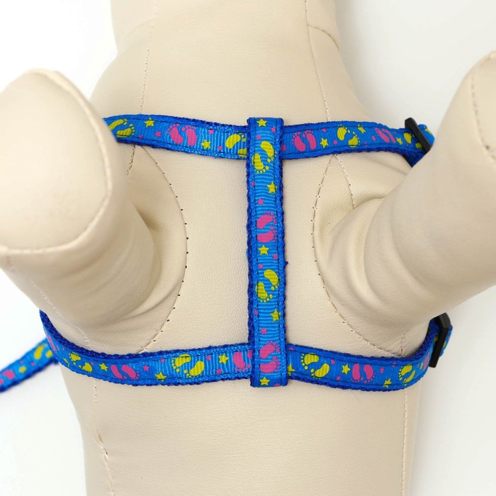 Шлейка с поводком «Цветные следы», 23-35 см, ширина 1 см, поводок 120 см, синяя