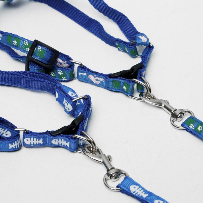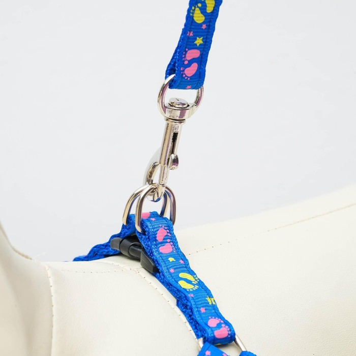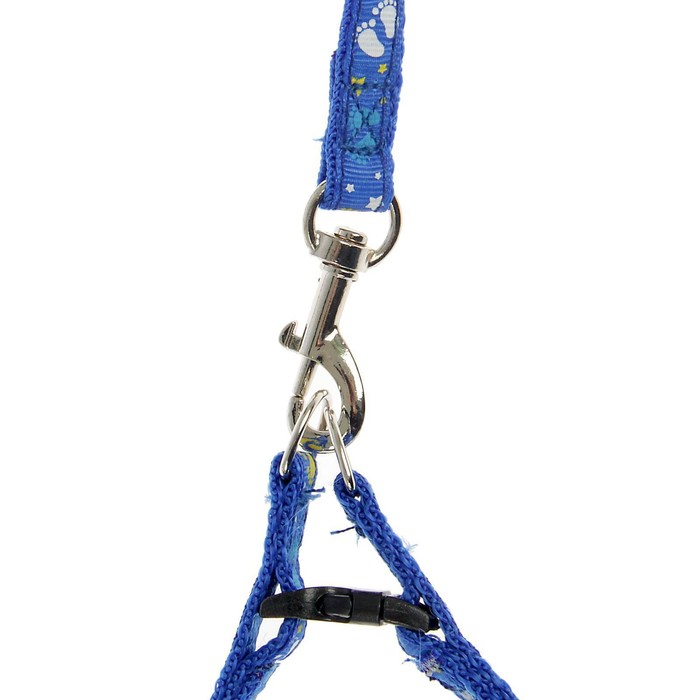 Шлейка с поводком «Цветные следы», 23-35 см, ширина 1 см, поводок 120 см, синяя — Характеристики
