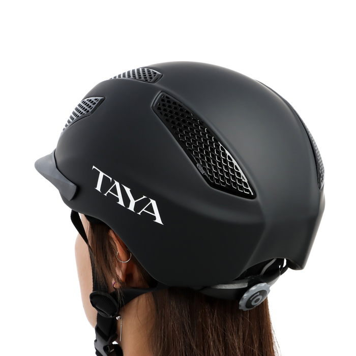 Шлем для верховой езды от бренда TAYA Equestrianism – идеальный выбор для конного спорта. Ударопрочный, но легкий, максимально комфортный и при этом безопасный – такой защитный шлем точно убережет голову от ударов в случае падения во время занятий и при этом классно дополнит профессиональный образ, так как хорошо смотрится с любой спортивной экипировкой. Форма шлема и сетчатых вставок по поверхности выдержаны в слегка "агрессивном" стиле, но линии плавные, взвешенные, чтобы с любой одеждой и в любом стиле шлем выглядел органично. Данная модель имеет дисковый регулятор размера, который позволяет удобно настроить посадку под любой объем и наклон, а так же крепкие и безопасные застежки, не натирающие и не впивающиеся в кожу при падениях. Высокий уровень комфорта достигается в том числе за счет мягкой, но крайне износостойкой внутренней обивки с отличной вентиляцией. Кроме того, модель оснащена отстегивающимся козырьком, который можно легко снять или установить в зависимости от погодных условий. Хотим обратить особое внимание на то, что использование шлема с пристегнутым козырьком не уменьшает показатели защитных характеристик: наш шлем конструктивно предполагает минимизацию травм и реальное обеспечение безопасности, поэтому, в случае падений и ударов напрямую козырьком о любые поверхности, козырек отстегивается и "вылетает", не становясь дополнительным рычагом воздействия, который мог бы нанести вред в виде тяжких травм. Экипировка проверена командой нашего бренда на себе, и мы готовы поручиться за то, что наш шлем для верховой езды не просто разово убережет всадника в критический момент, а прослужит долго верой и правдой, ненавязчиво дополняя образ наездника элегантной ноткой взвешенного профессионализма. Такой шлем подойдет и профи, и любителям – взрослым и детям.