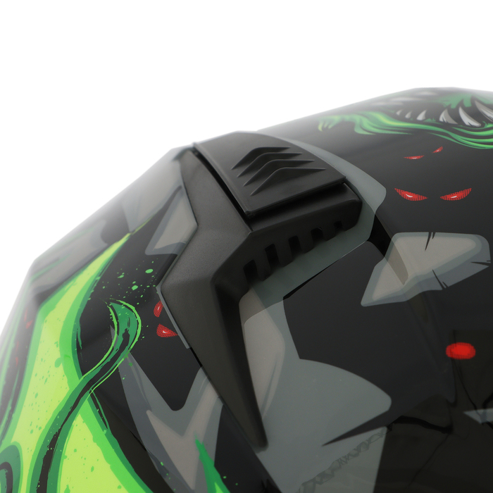 Прогрессивная вентиляция с регулировками уровня обдува. Ползунки для удобного подъема визора без контакта со стеклом. Внутренняя съемная подкладка выполнена из качественных материалов и не имеет резких, ярко выраженных запахов. Шлем изготовлен из качественного ABS пластика, который в свою очередь обладает долговечностью, высокой механической прочностью.