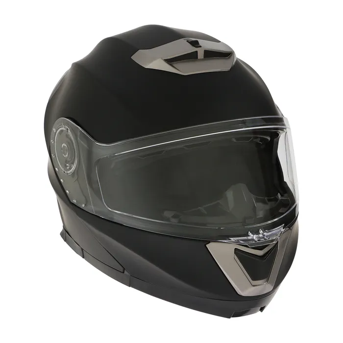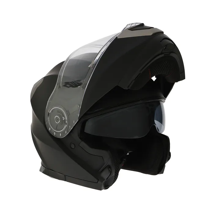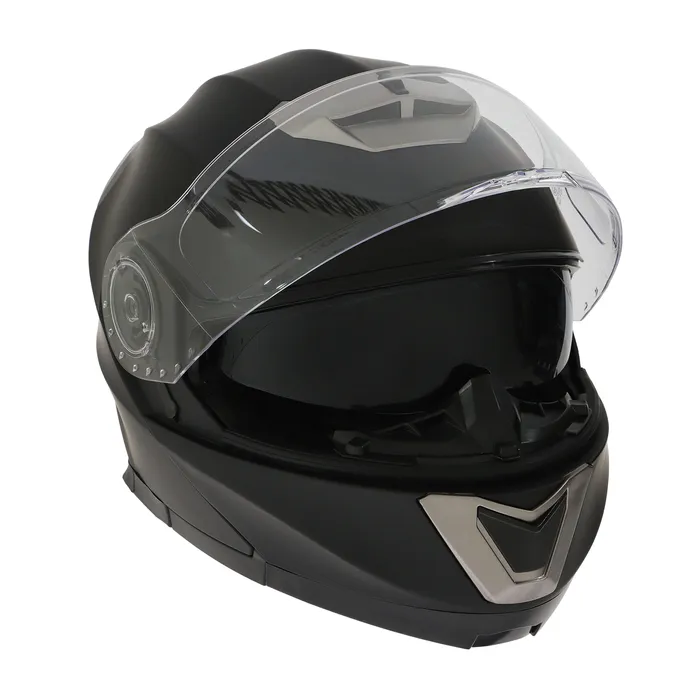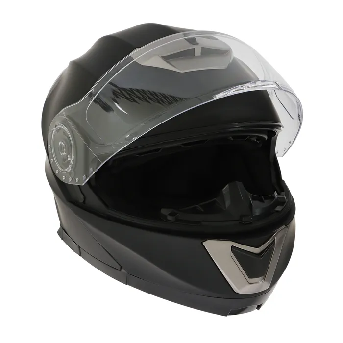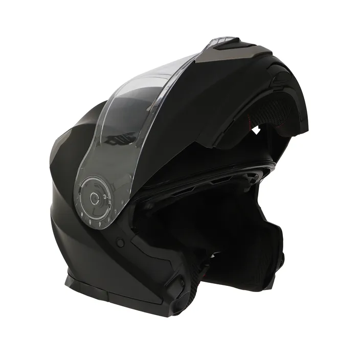 Модулярный шлем - это защитный головной убор, с поднимающейся подбородочной частью. Этот тип шлема представляет собой комбинацию полнолицевого и открытого шлема, что делает его универсальным и удобным для использования в различных условиях. Шлем модуляр обеспечивает высокий уровень защиты головы и лица мотоциклиста от возможных травм и повреждений на дороге. Кроме того, модулярный шлем оснащен встроенным солнцезащитным визором, который помогает защитить глаза мотоциклиста от яркого солнечного света. Модуляр также имеет систему вентиляции со шторками для регулировки обдува, которая обеспечивает достаточное количество свежего воздуха внутри шлема, что позволяет мотоциклисту чувствовать себя комфортно даже в жаркую погоду. Внутренняя съемная подкладка выполнена из качественных материалов и не имеет резких, ярко выраженных запахов. Шлем изготовлен из качественного ABS пластика, который в свою очередь обладает долговечностью, высокой механической прочностью.