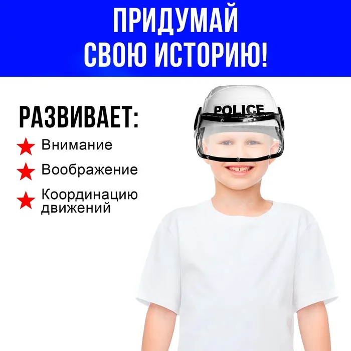 С каской «Полиция» кроха сможет играть в защитников города, представлять себя спасателем или супергероем. С такой игрушкой мальчишка будет возиться часами, при этом у ребёнка разовьются воображение, мышление и эмоциональное восприятие.