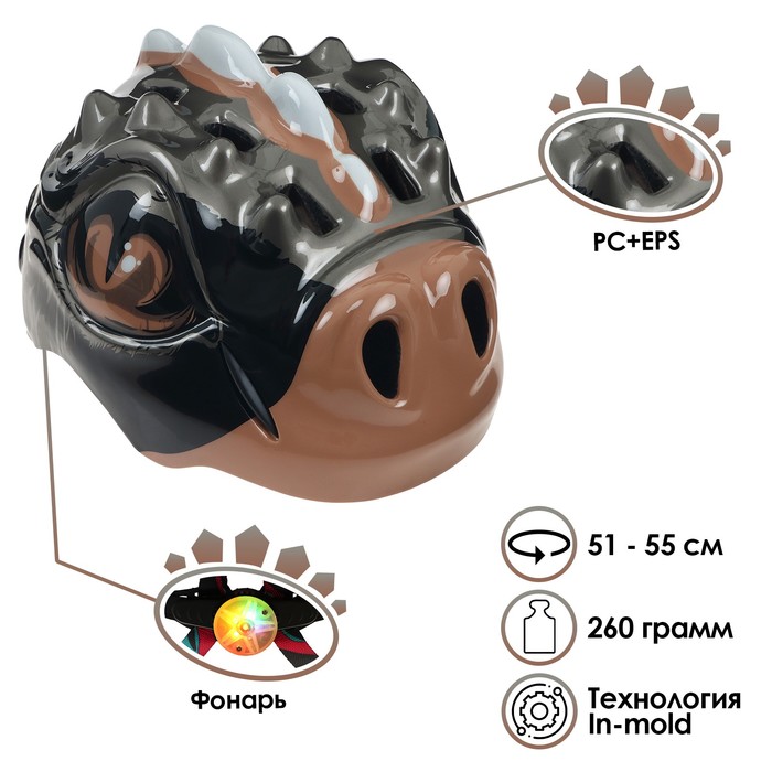 Шлем велосипедиста детский CORSA «Медвежонок», р. S, обхват 50-54 см, цвет коричневый — Характеристики