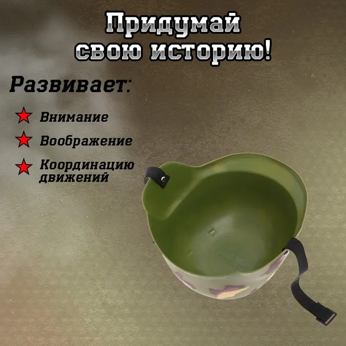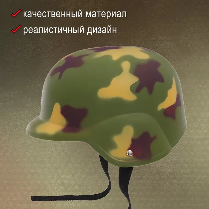 Камуфлированный шлем для юного защитника станет отличным аксессуаром для игр в солдата и создаст атмосферу настоящих военных приключений. Этот аксессуар создан специально для мальчиков, увлеченных тематикой армии и профессий героев.