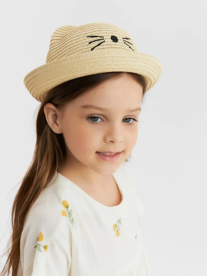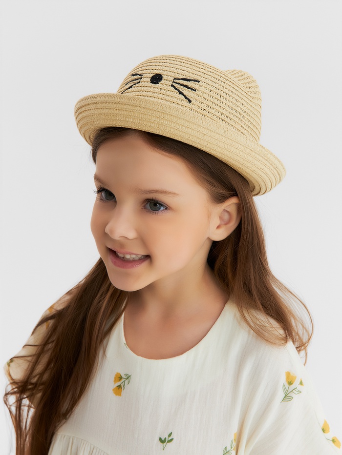 Панама детская соломенная «Кошечка», с ушками, р-р 52-54, 2-6 лет