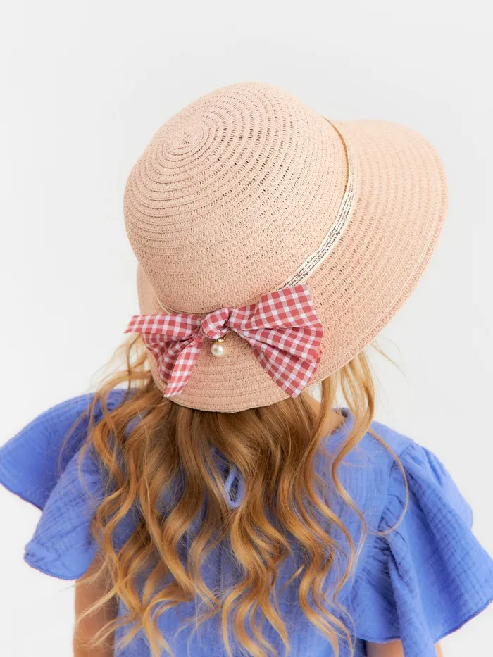 Шляпа для девочки MINAKU с бантом, розовая, размер 52