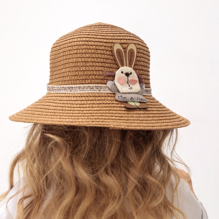 Шляпа для девочки MINAKU «Зайка», коричневая, размер 52