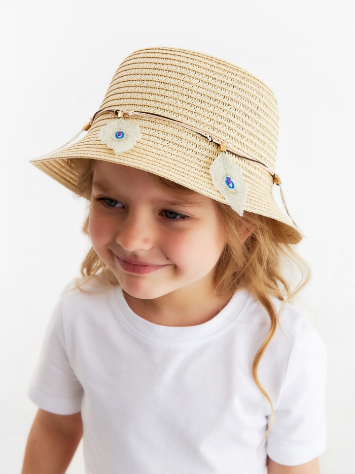 Шляпа для девочки «Перья» MINAKU, размер 52, бежевая — Характеристики