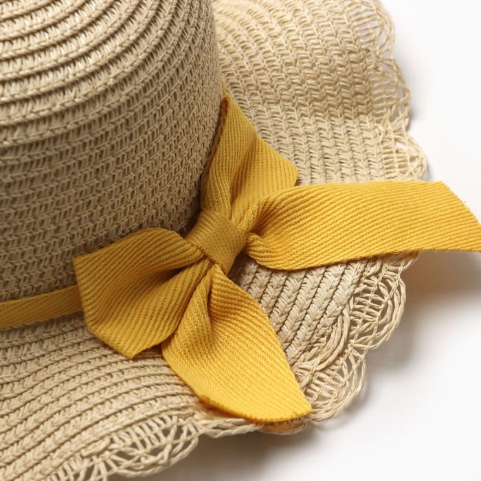 Шляпа для девочки с бантом MINAKU, размер 52, светло-коричневая