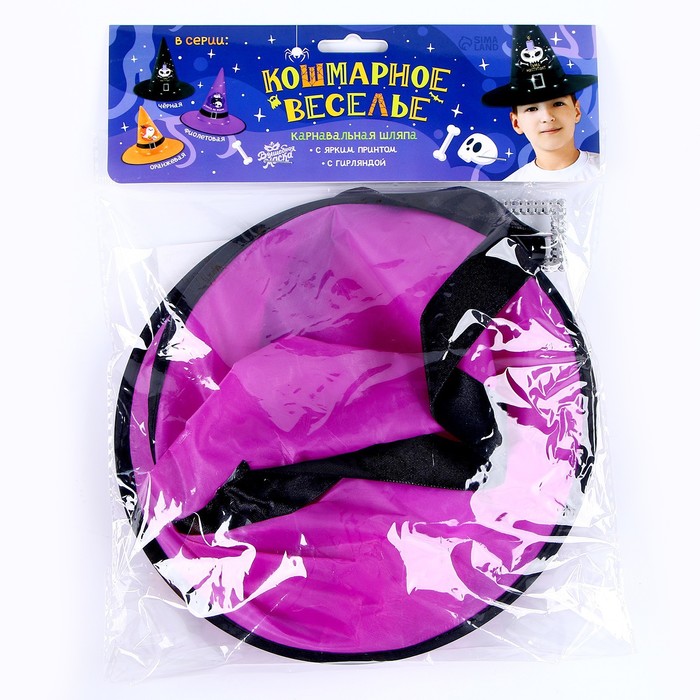 Шляпа карнавальная «Кошмарное веселье» фиолетовая, с гирляндой — Характеристики