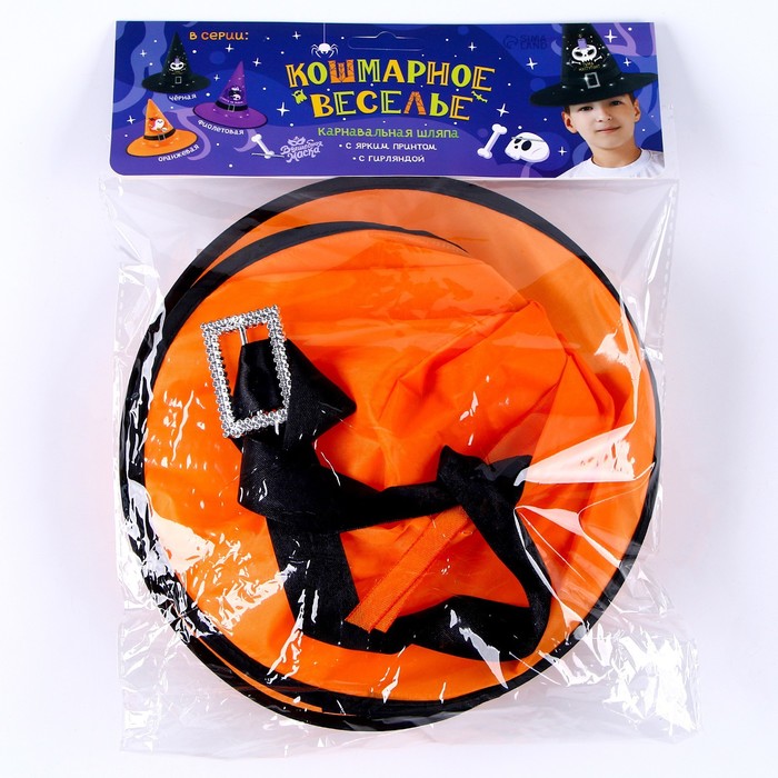 Хотите подарить себе и близким незабываемую атмосферу на Хэллоуин? Тогда карнавальная шляпа «Кошмарное веселье» с гирляндой поможет вам! С ней вы перевоплотитесь в коварного покровителя ночи, заслужите восхищённые взгляды и комплименты на костюмированной вечеринке. Создайте яркие эмоции и воспоминания!