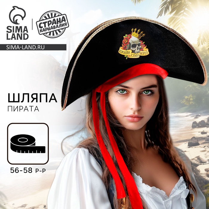 Шляпа пиратская «Королева семи морей», взрослая, р-р 56-58 — Характеристики
