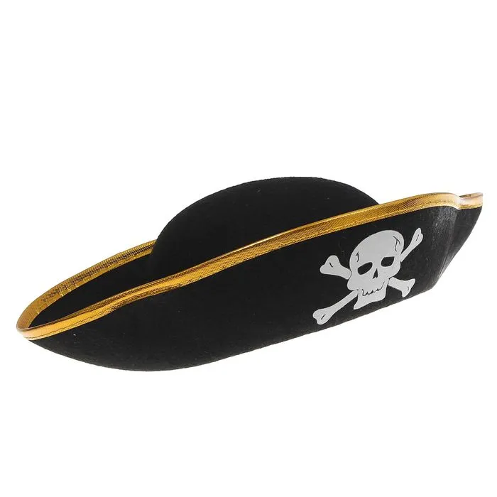 Шляпа пиратская, р-р 56-58, каёмка, МИКС отличное дополнение к вашему образу. Мы предлагаем для вас множество вариантов, как эффектно появиться на вечеринке в образе пирата. Кинжал, костюм, бандана, попугай на плече и бутылка рома в руках – вот составляющие образа морского разбойника. Но все же шляпа остается важной деталью в образе.