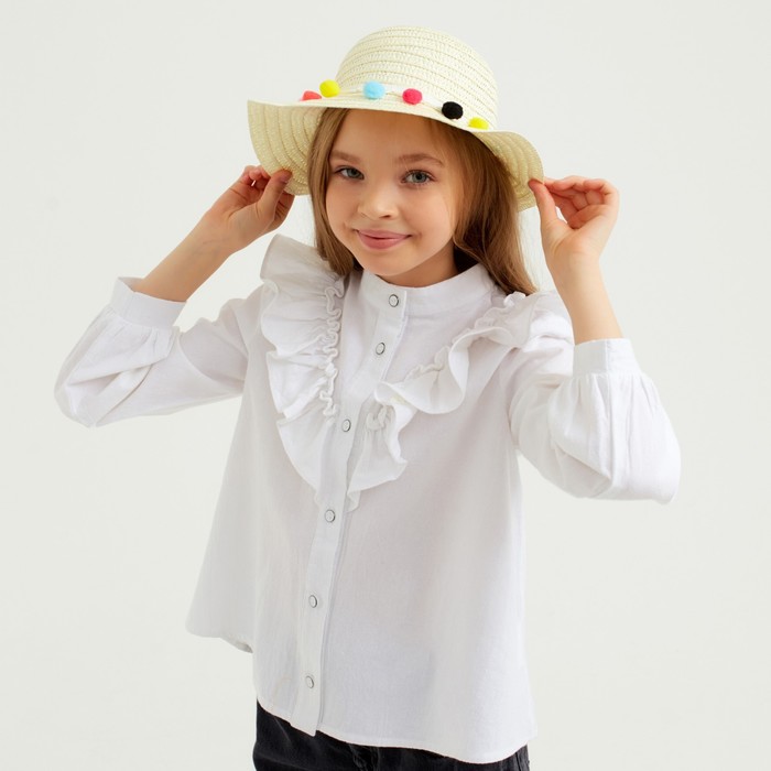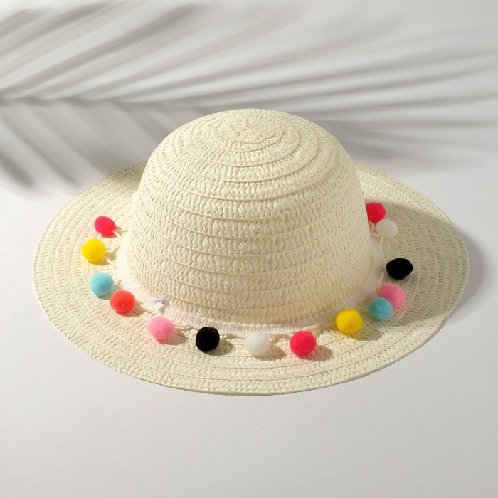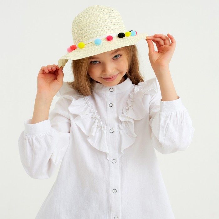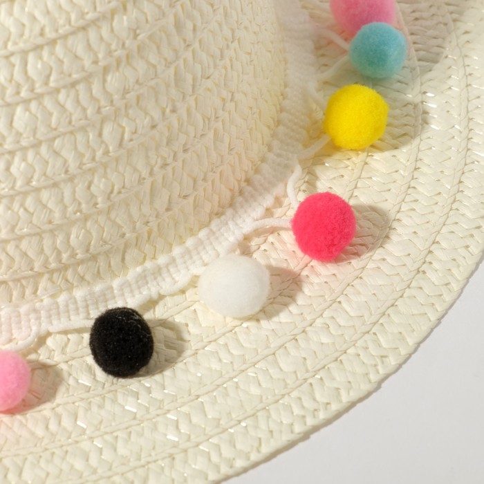 Шляпа с бомбошками для девочки MINAKU, размер 50, белая — Характеристики