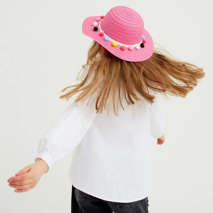 Шляпа с бомбошками для девочки MINAKU, размер 50, цвет розовый — Характеристики