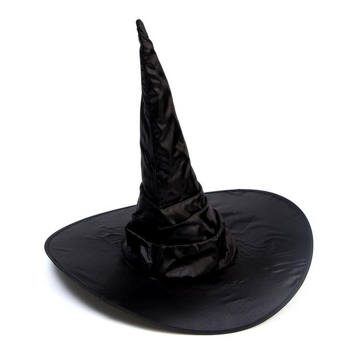 Шляпа «Ведьмочка» драпированная, блестящая, чёрная — Характеристики