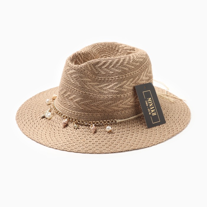 Шляпа женская летняя MINAKU, бежевая, размер 56-58, целлюлоза 100%