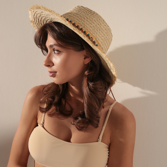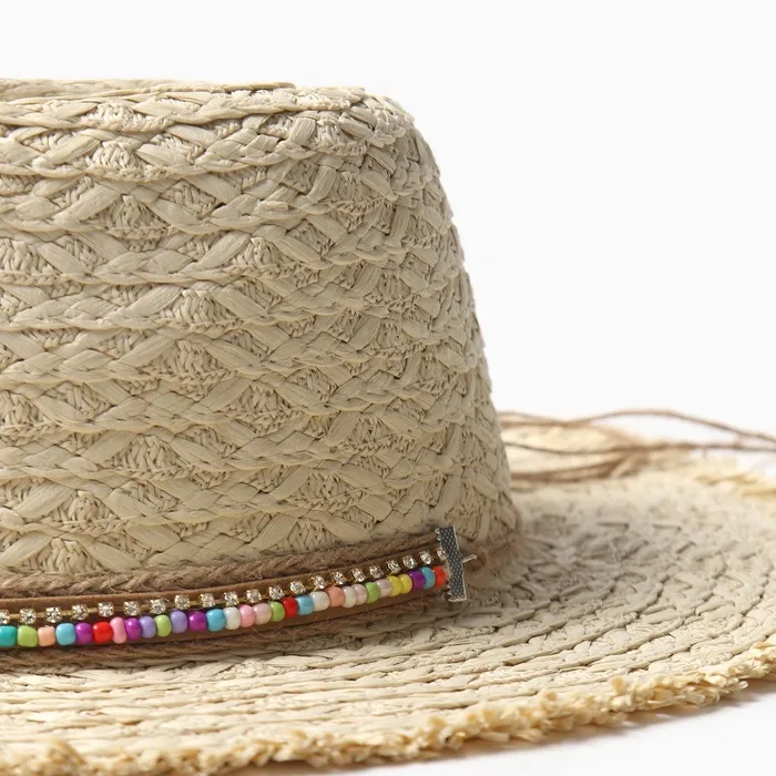 Шляпа женская летняя с бусами MINAKU, бежевая, размер 56-58 — Характеристики