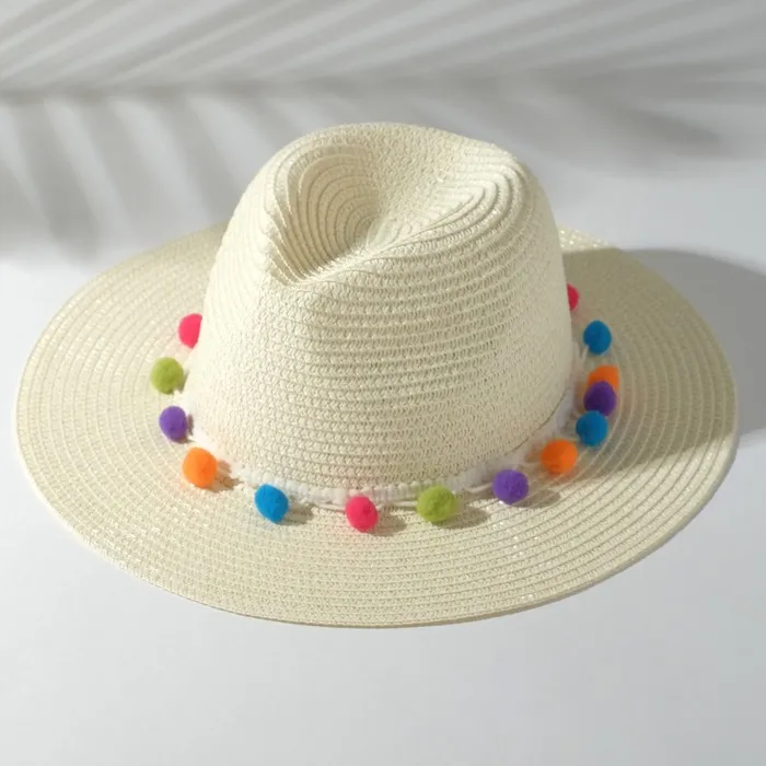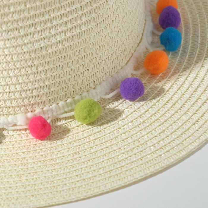 Шляпа женская с бомбошками, размер 54-56, белая — Характеристики