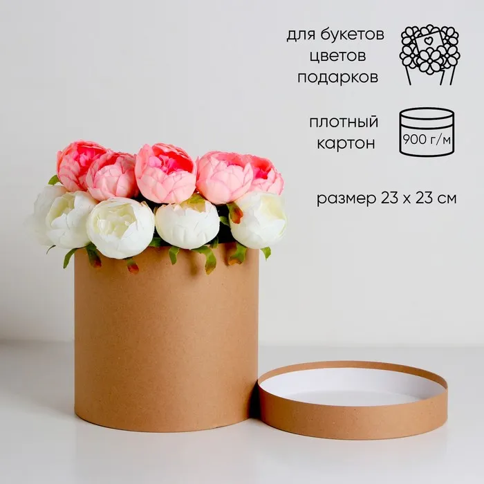 Шляпная коробка изготовлена из плотного картона премиум качества. Это позволяет упаковке сохранять аккуратный внешний вид в течение длительного времени.