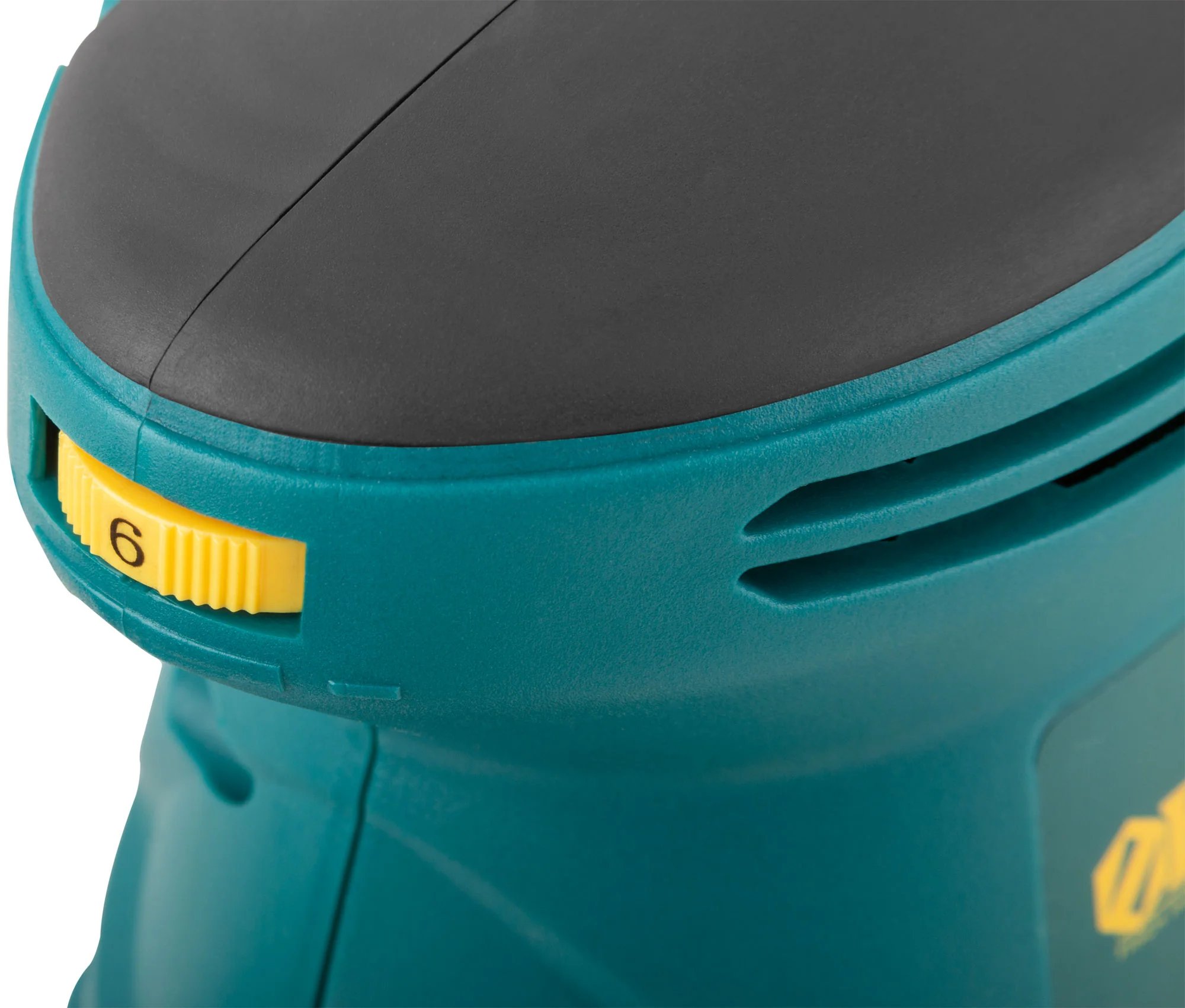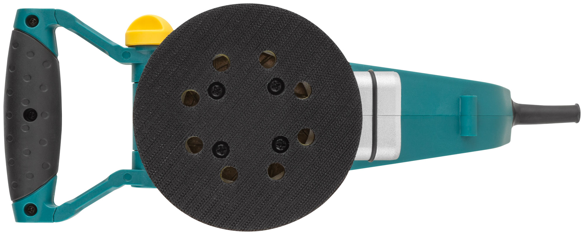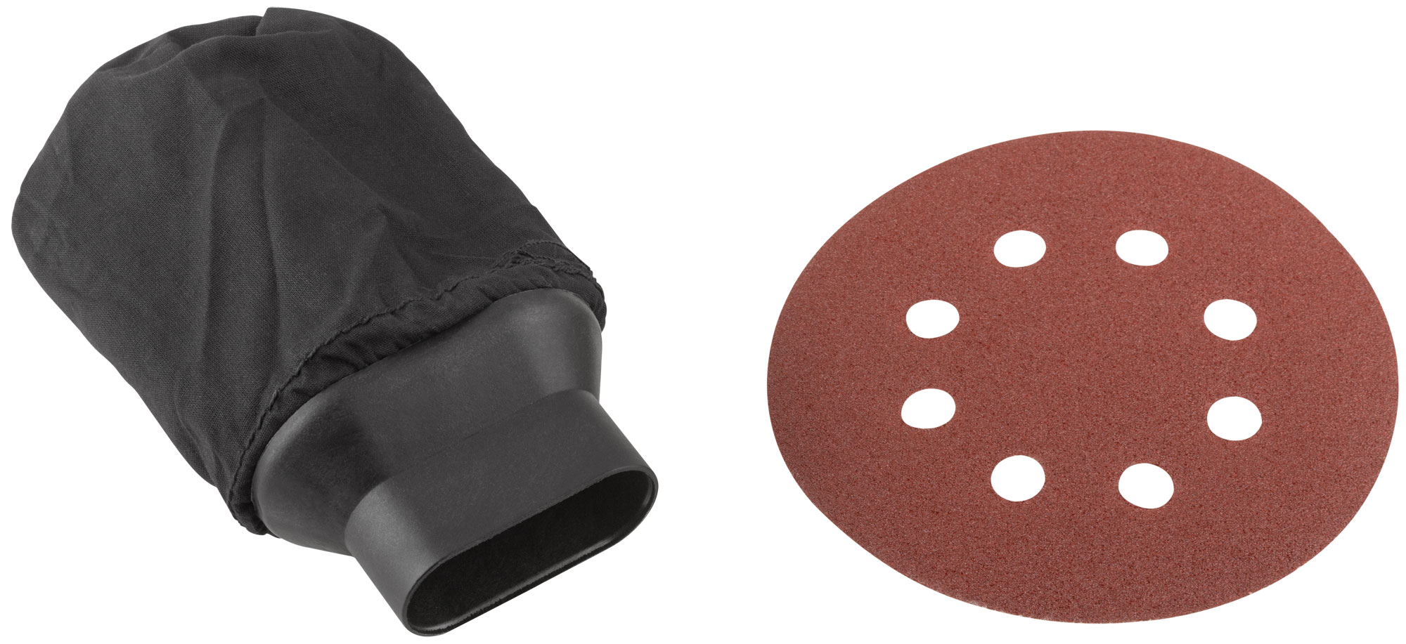 Конструкция включает в себя электронный регулятор оборотов, что позволяет адаптировать инструмент под разные задачи. Быстрая смена наждачных кругов на липучке значительно упрощает работу, а мешок для сбора пыли поддерживает чистоту рабочего места.