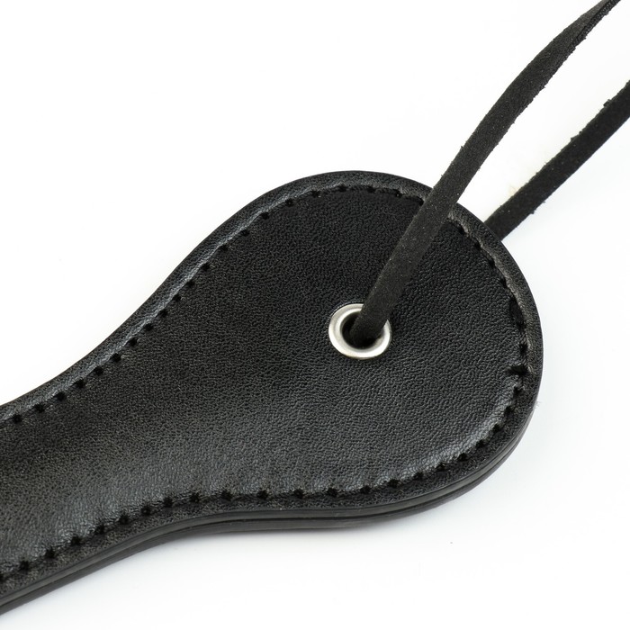 Шлёпалка выполнена из эко-кожи. Размер 38 см. Удобно ложится в руку, эко-кожа не позволит выскользнуть. Подходит для BDSM-практик.
