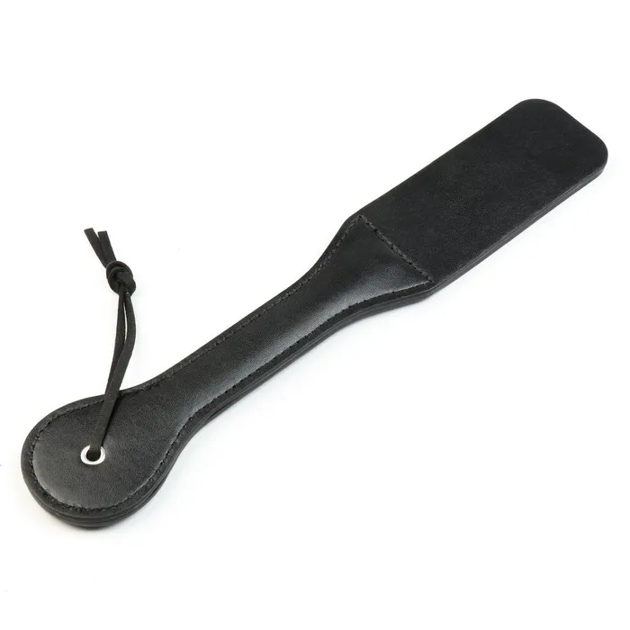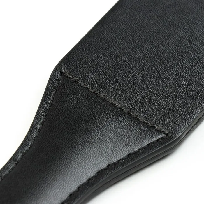 Шлёпалка выполнена из эко-кожи. Размер 38 см. Удобно ложится в руку, эко-кожа не позволит выскользнуть. Подходит для BDSM-практик.
