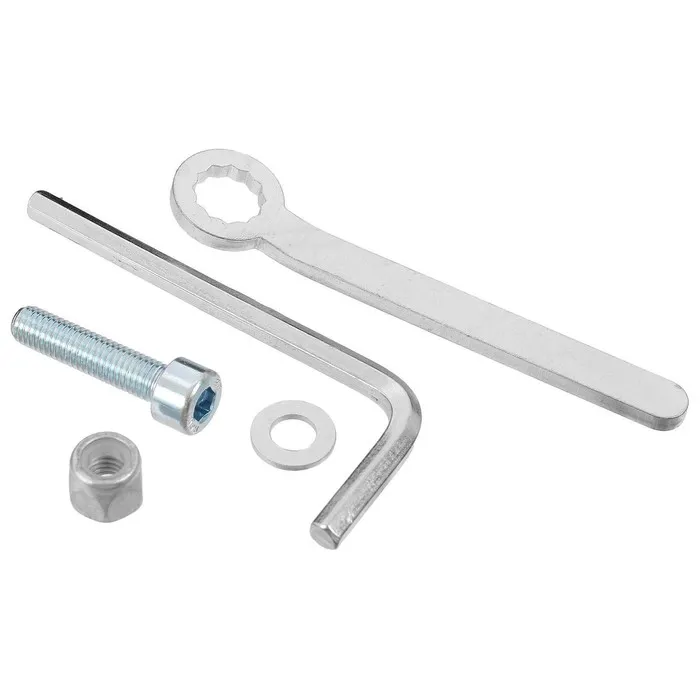 Для присоединения шнека к валу мотобура необходимо использовать винт, шайбу и гайку, которые устанавливаются при помощи ключей S6 и S13 (в комплекте). Допускается присоединение к шнеку мотобуров с диаметром выходного вала от 18 до 20 мм.