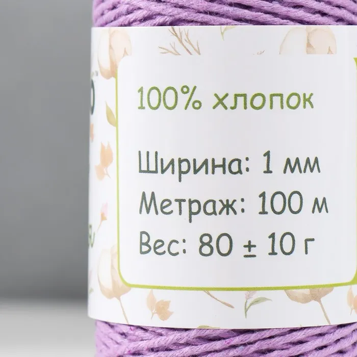 Шнур для вязания 100% хлопок, ш. 1 мм, 100 м, 80 г «Сиреневый», 10×4.2×4.2 см — Характеристики