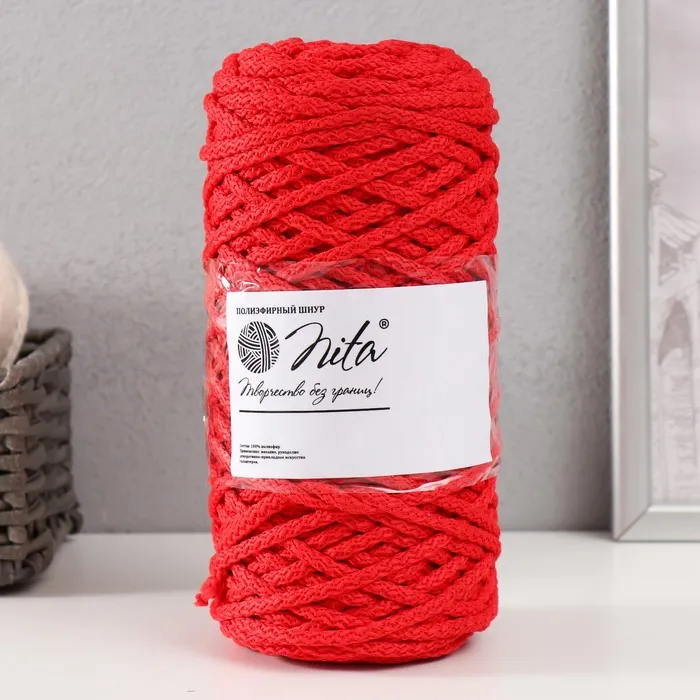 Шнур для вязания 100% полиэфир, ширина 5 мм 100м (красный) — Характеристики