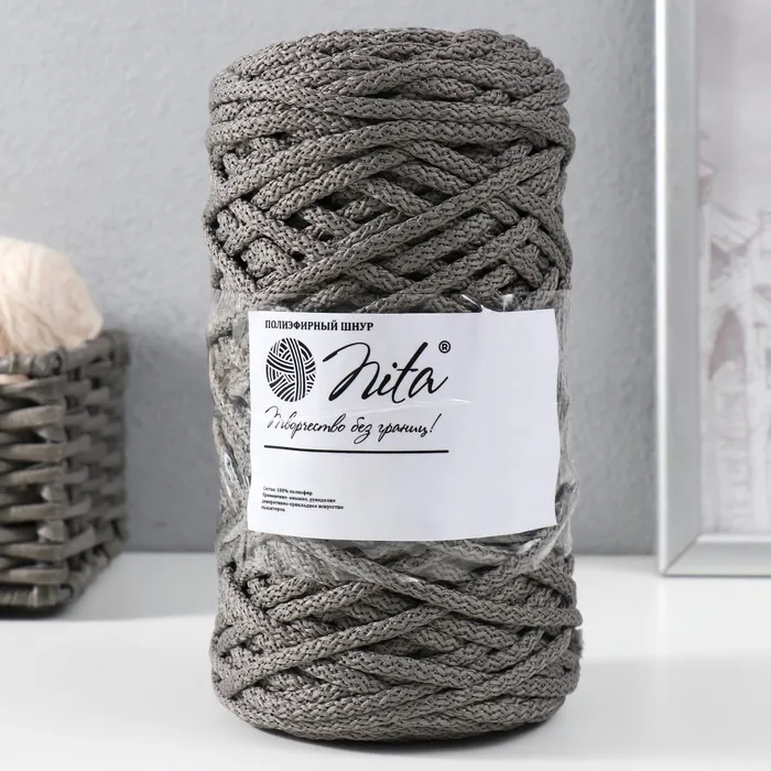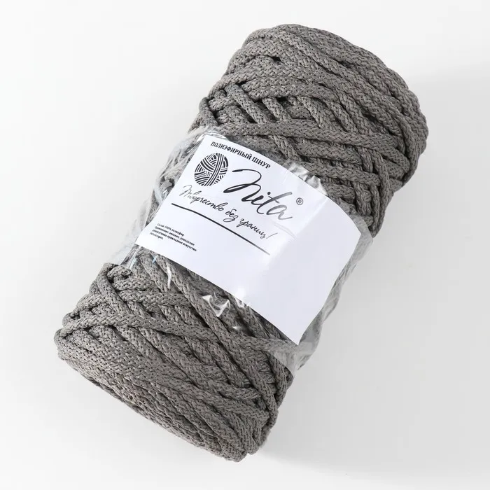Шнур для вязания 100% полиэфир, ширина 5 мм 100м (серый) — Характеристики