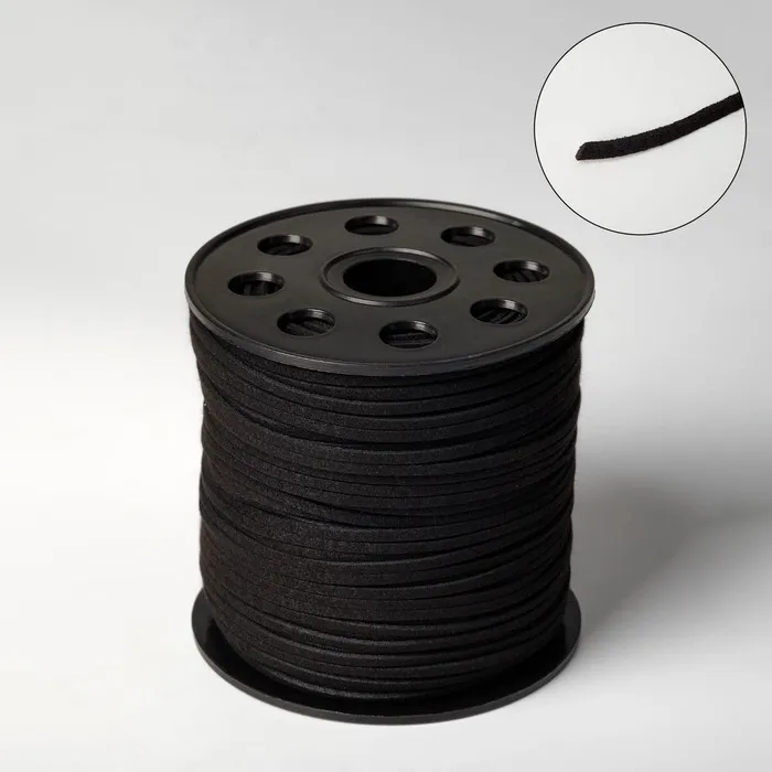 Шнур из искусственной замши на бобине длиной 90 м и шириной 2,3 мм, цвет чёрный – это идеальный материал для создания стильных и долговечных украшений и аксессуаров. Искусственная замша обладает мягкой текстурой и привлекательным внешним видом, при этом оставаясь прочной и долговечной. Чёрный цвет шнура делает его универсальным и легко сочетающимся с различными декоративными элементами и стилями.