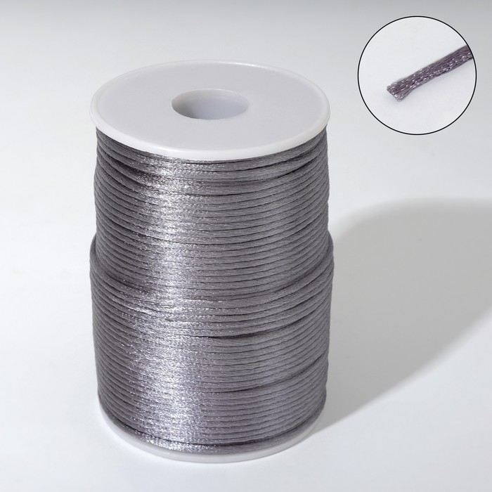 Серый цвет шнура придаёт изделиям стильный и современный вид, а также позволяет легко сочетать его с различными декоративными элементами, такими как бусины, камни, подвески и фурнитура. Диаметр шнура 2 мм обеспечит прочность и долговечность ваших украшений, при этом оставаясь достаточно гибким для удобной работы с узорами.